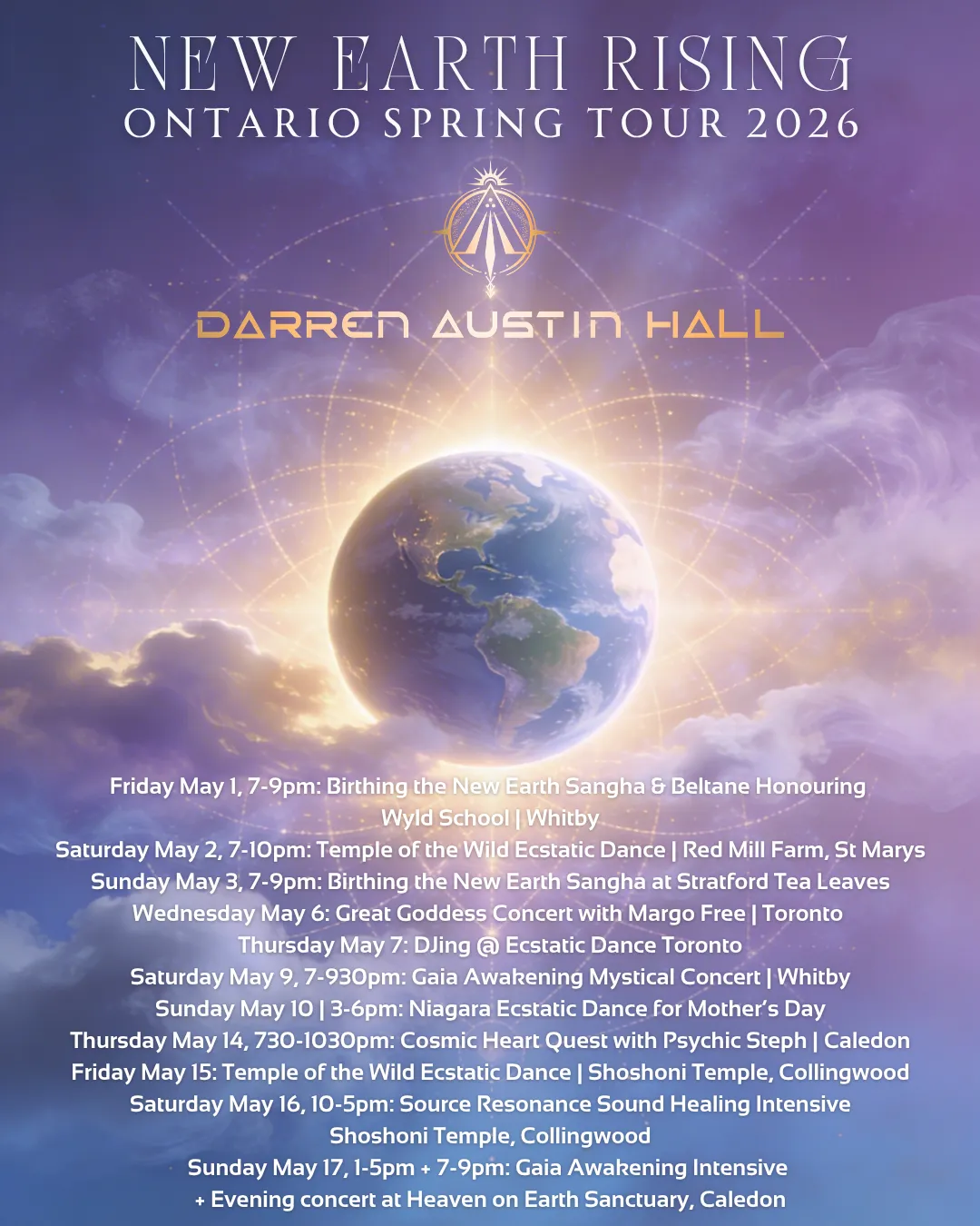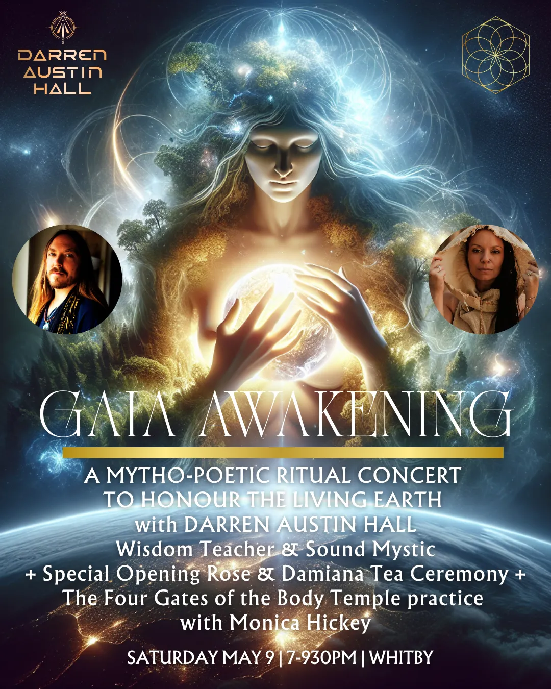 BONUS: registrants will also have access to the special evening event, Darren’s GAIA AWAKENING MYSTICAL CONCERT, which will take place from 7-9pm and will also be open to the public for those who cannot attend the intensive.