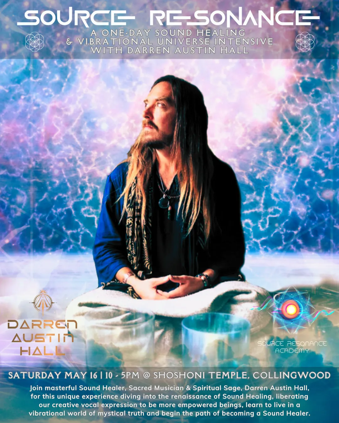 Darren Austin Hall is a sacred sound oracle, Wisdom Teacher, spiritual mentor, & author. he is founder of the Source Resonance Academy & Gaia Awakening Wisdom School.